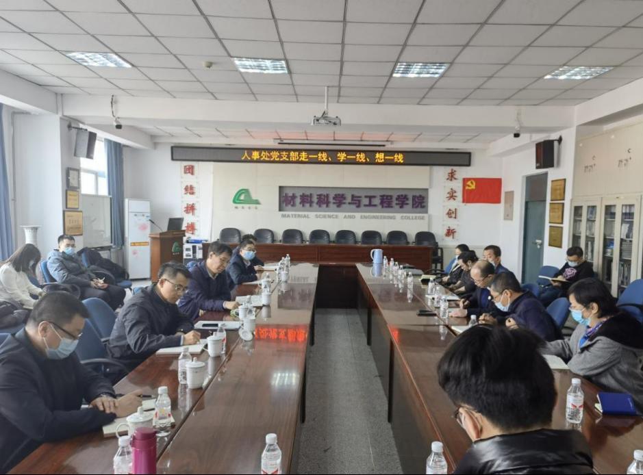 为巩固党史学习教育成果,持续开展“我为师生办实事”活动,奋进担当,喜迎二十大。3月18日下午,人事处党支部赴材料科学与工程学院开展“关注一线、走进一线、学习一线、服务一线”主题党日活动暨人才工作调研座谈会,李斌校长作为支部党员参加。人事处党支部党员、材料科学与工程学院领导班子成员、人才代表参会。座谈会由人事处党支部书记张春雷同志主持。