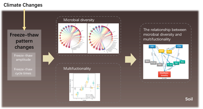 该研究得到了国家自然科学基金、及中央高校的基本科研业务经费的资助,博士研究生刘明慧和季喜梅分别为第一作者。目前,研究团队正在开展野外原位控雪实验,将进一步验证和补充冻融对土壤微生物多样性及其功能的影响机制。